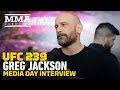 At media day for UFC 239, coach Greg Jackson talks about the benefits of having Jon Jones and Holly Holm competing on the same card, Diego Sanchez's Hall of Fame call being overdue, what he wants to see from prospect Aaron Pico, and more.